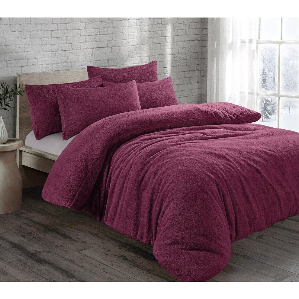 Cozy Teddy Bear Fleece Plum Duvet Cover Set | Sherpa Thermal & Soft Warm Bedding for Ultimate Comfort (Double)
