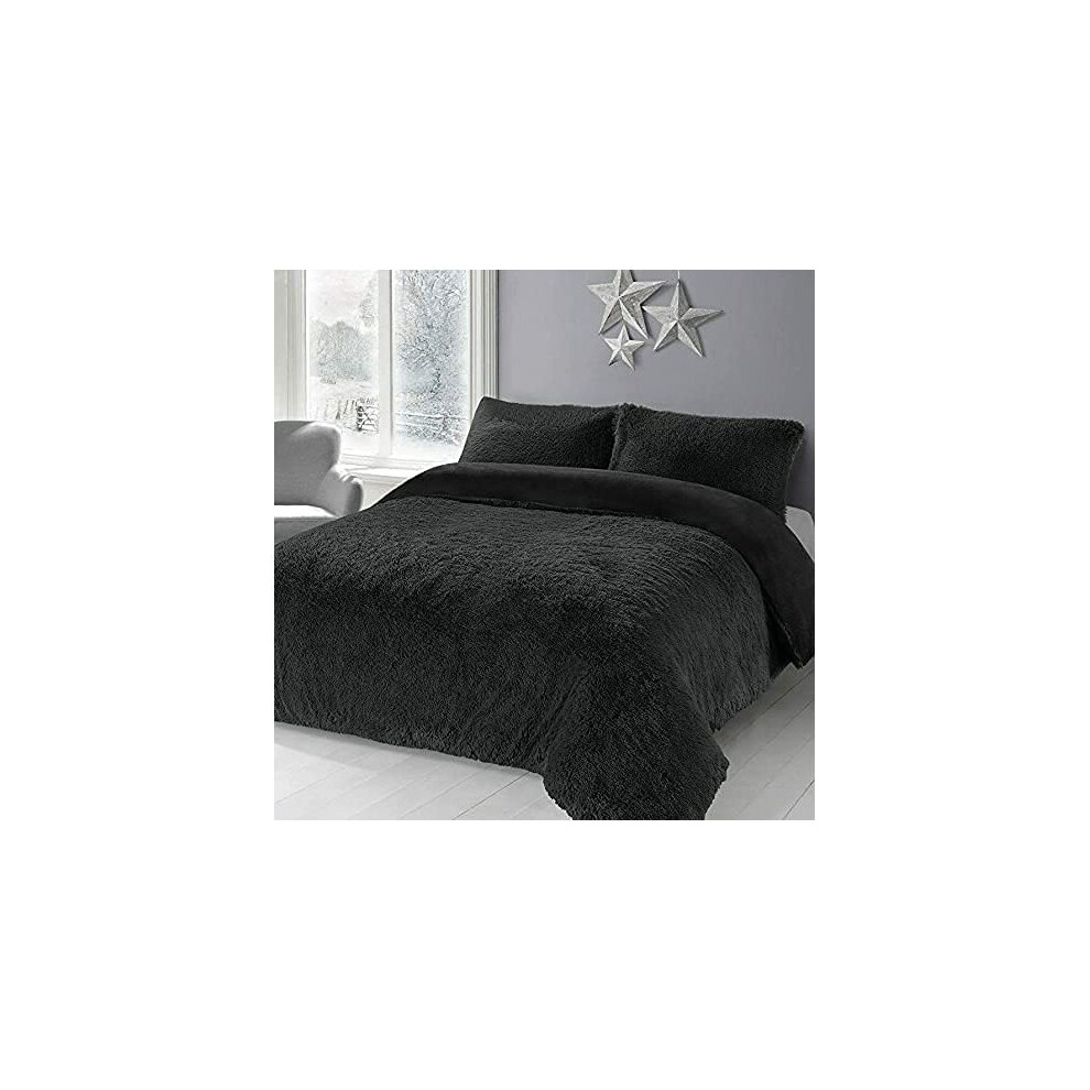 HOMES-LINEN Teddy Bear Fleece Long Fur Cuddles Alaska Luxury Duvet Cover Set Warm Cosy Soft Teddy Bedding Set (Black, Double)