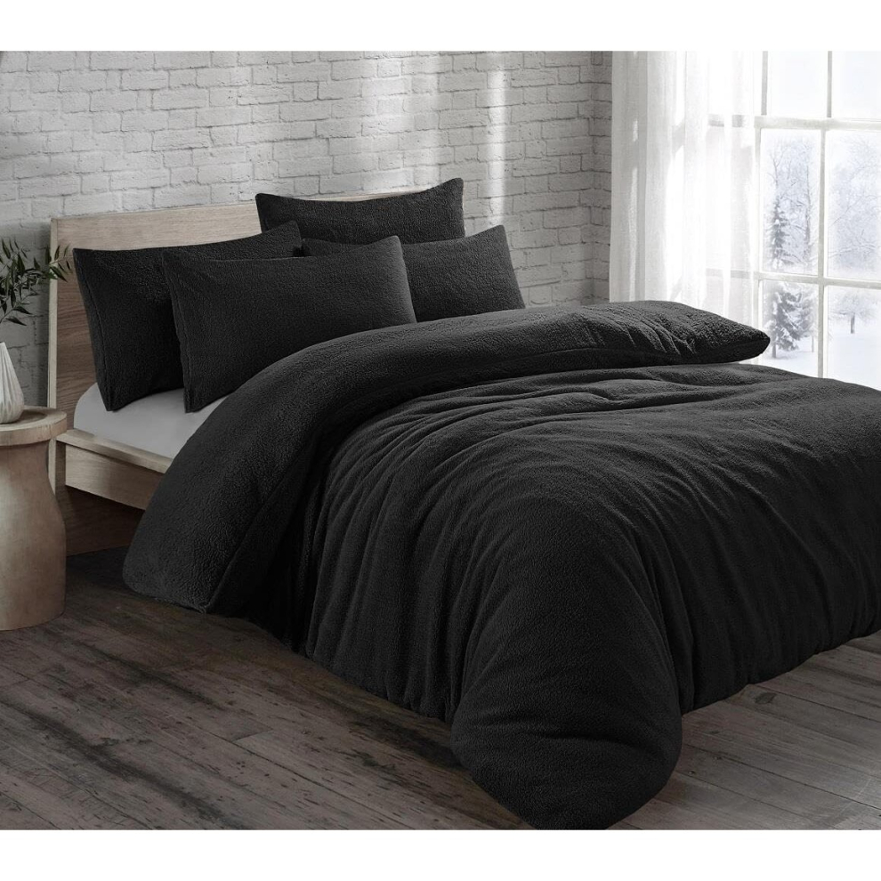 (Double , Black) Teddy Bear Duvet Cover Fleece Bedding Set With Pillowcases Extra Warm Cosy in All Sizes