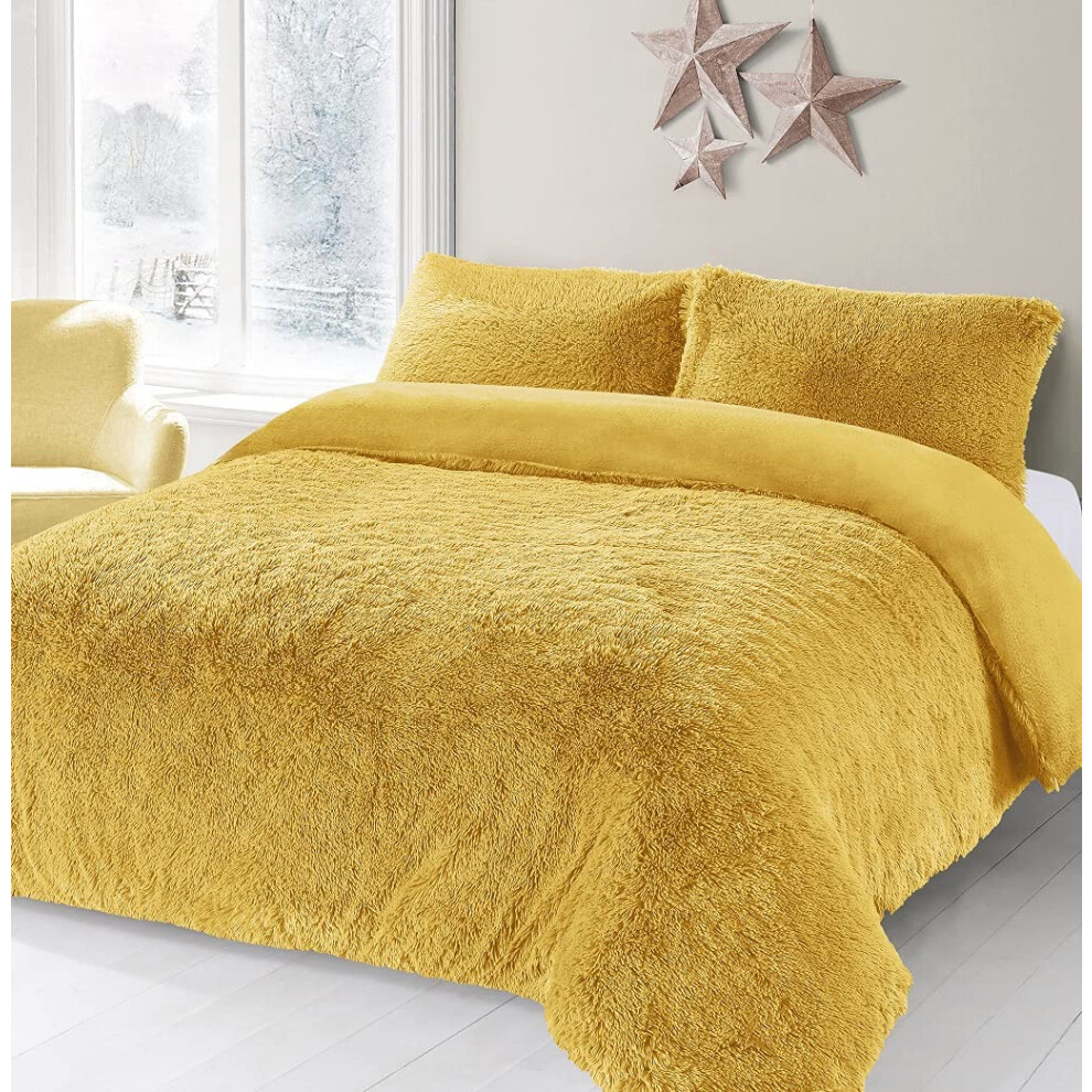 Artistic Fashionista* NEW Soft Warm & Cosy Teddy Bear Faux Fur Fleece CUDDLY Duvet Quilt Cover Pillowcases Bedding Set (Ochre / Mustard, Double)