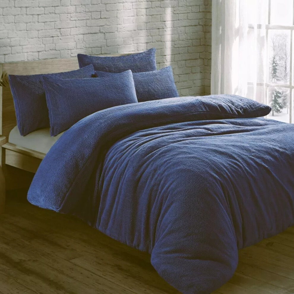 Cozy Teddy Bear Fleece Navy Duvet Cover Set | Sherpa Thermal & Soft Warm Bedding for Ultimate Comfort (Double)