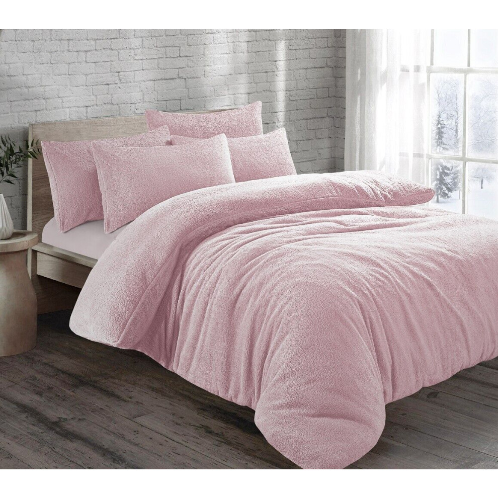 (Double , Pink) Teddy Bear Duvet Cover Fleece Bedding Set With Pillowcases Extra Warm Cosy in All Sizes