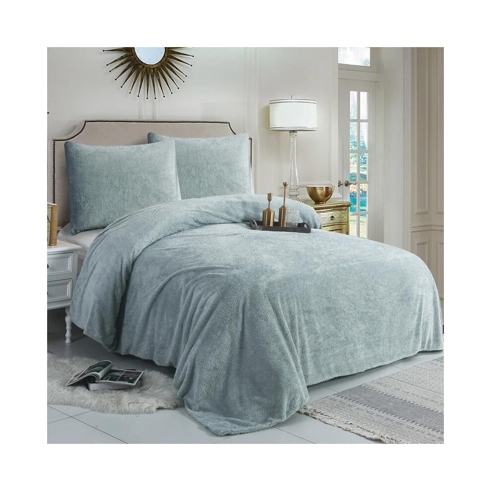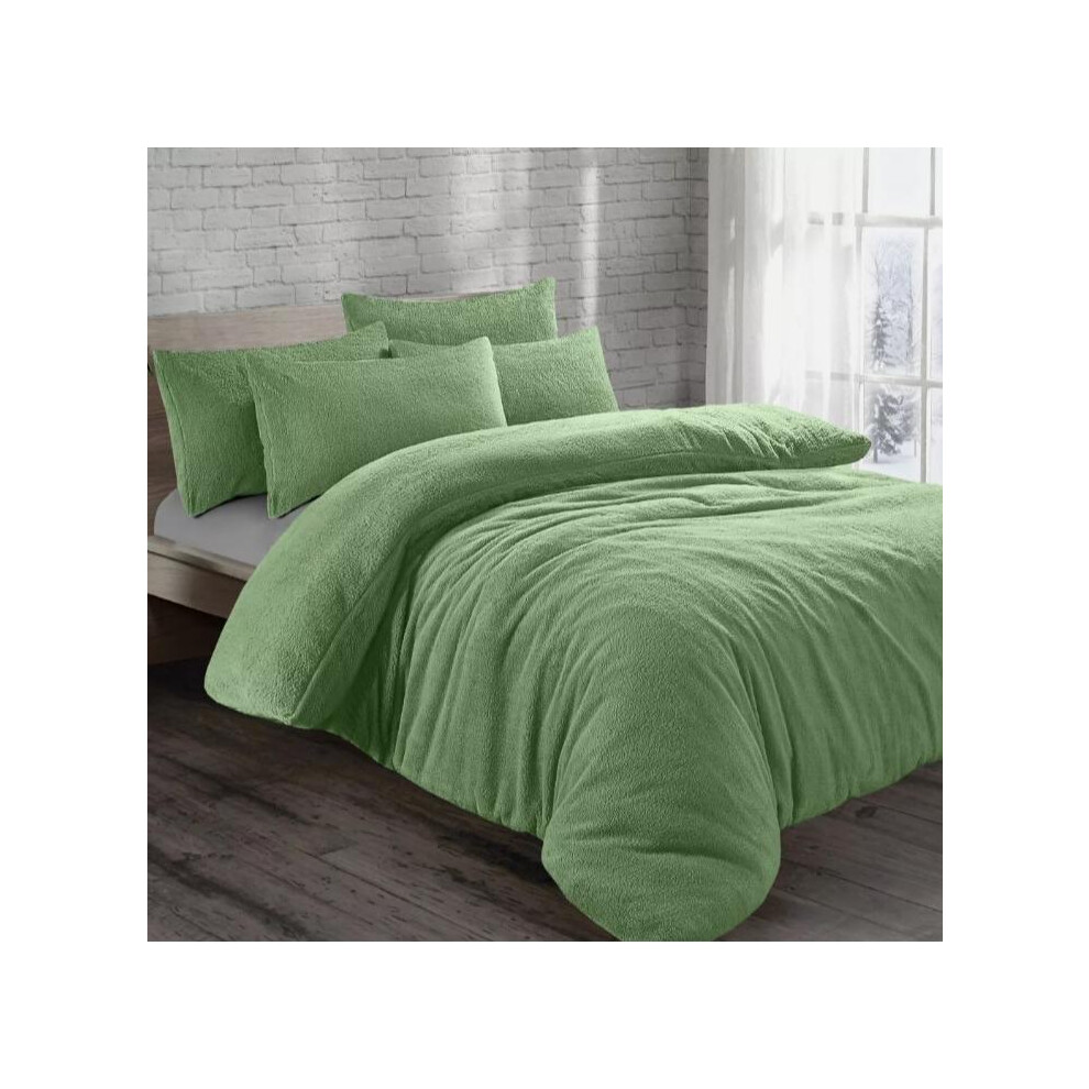(Sage, Super King) Teddy Bear Fleece Duvet Cover Set Sherpa Thermal Warm Soft Bedding & Pillowcases Available In Different Colour and Size