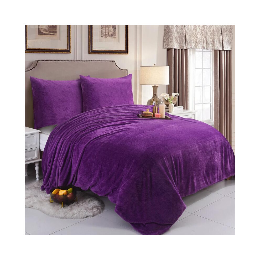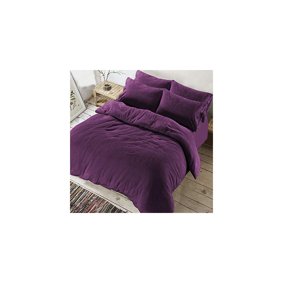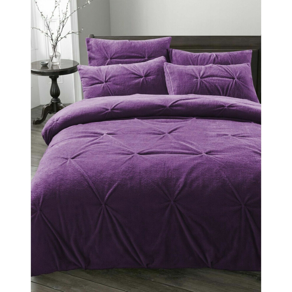 (Purple, Super King) Teddy Bear Fleece Duvet Cover Set Sherpa Thermal Warm Soft Bedding & Pillowcases Available In Different Colour and Size