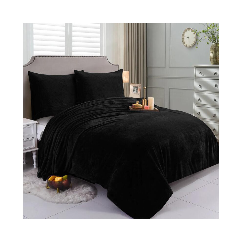 (Black, Super King) Teddy Bear Fleece Duvet Cover Set Sherpa Thermal Warm Soft Bedding & Pillowcases Available In Different Colour and Size