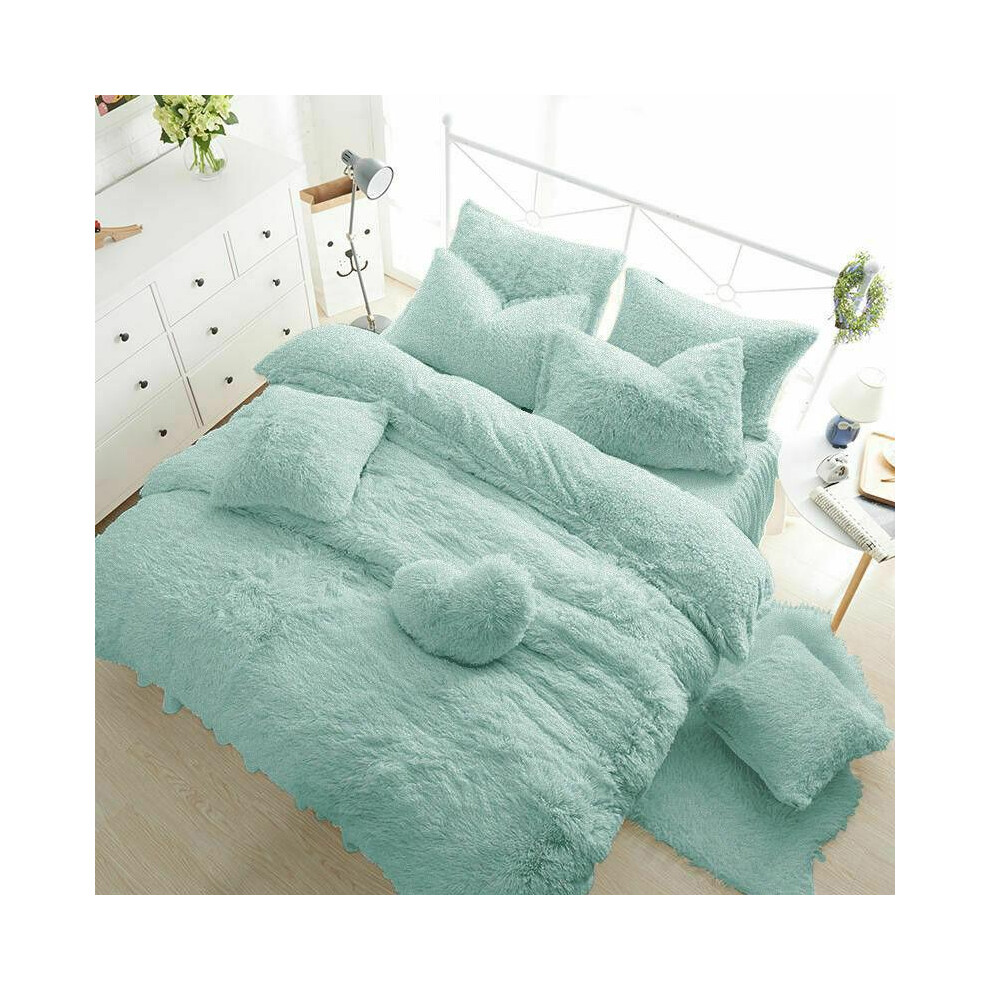 (Duck Egg, King) Teddy Bear Fleece Extra Deep Fitted Sheets Bedding Set & Pillowcases All size 12"/30cm Box Bedding Cozy Warm Fluffy
