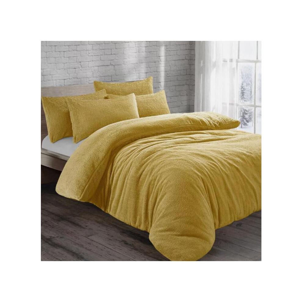 (Ochre, Super King) Teddy Bear Fleece Duvet Cover Set Sherpa Thermal Warm Soft Bedding & Pillowcases Available In Different Colour and Size