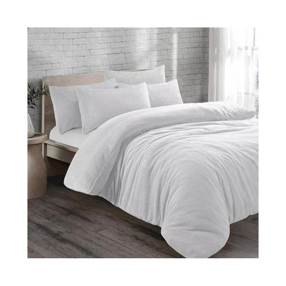 (White, Super King) Teddy Bear Fleece Duvet Cover Set Sherpa Thermal Warm Soft Bedding & Pillowcases Available In Different Colour and Size