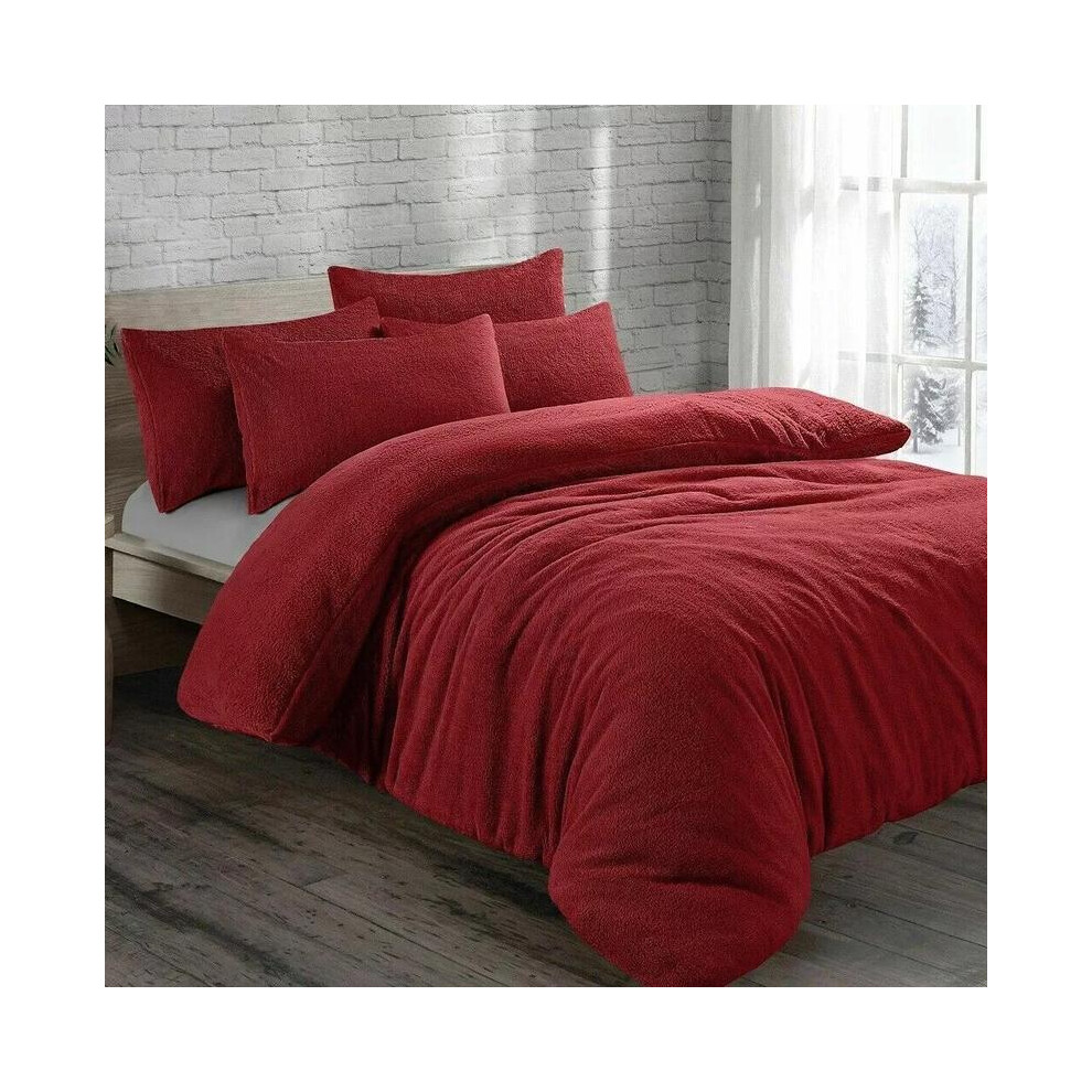 (Red, Super King) Teddy Bear Fleece Duvet Cover Set Sherpa Thermal Warm Soft Bedding & Pillowcases Available In Different Colour and Size