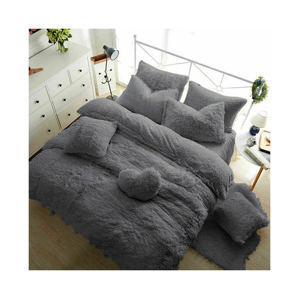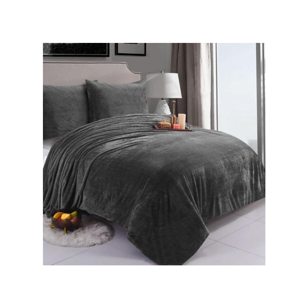 (Charcoal, Super King) Teddy Bear Fleece Duvet Cover Set Sherpa Thermal Warm Soft Bedding & Pillowcases Available In Different Colour and Size