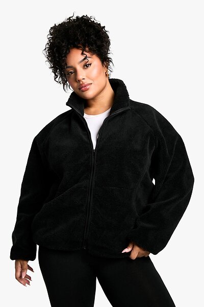 Boohoo Petite Teddy Faux Fur Oversized Bomber Jacket (Women's)