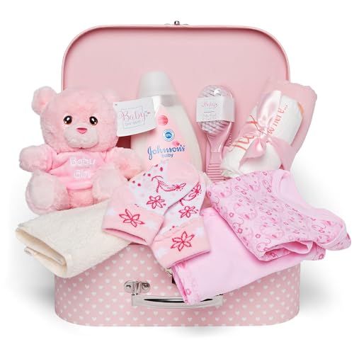 Baby Box Shop - Baby Girl Hamper, Newborn Girl Gift Set, Baby Shower Keepsake Box with Plush Teddy Bear, Clothing & Accessories