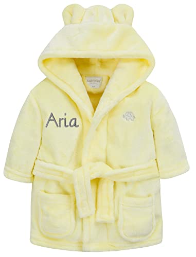 Gembroidery Personalised Baby Bathrobe Hooded Fleece Dressing Gown Super Soft Gifts Bath Robe For Boys Girls Cute Teddy Ears (12-18 Lemon)