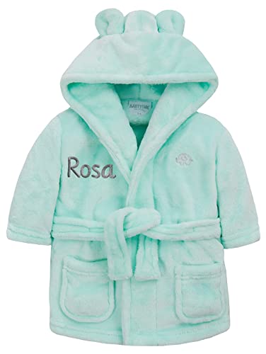 Gembroidery Personalised Baby Bathrobe Hooded Fleece Dressing Gown Super Soft Gifts Bath Robe For Boys Girls Cute Teddy Ears (0-6 Mint)