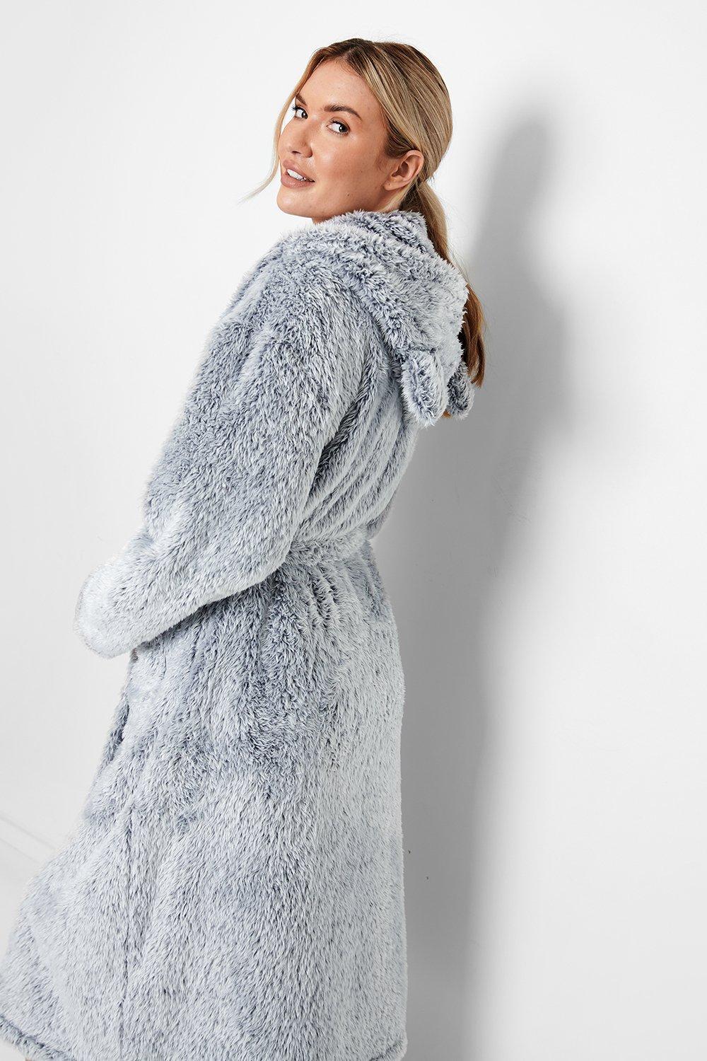 Teddy Fleece Long Dressing Gown Warm House Coat Hooded