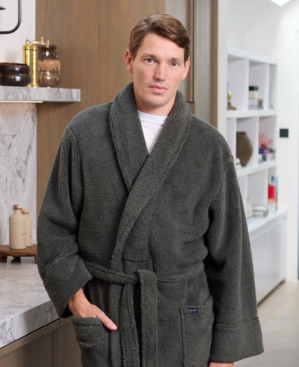 Savile Row Company London Men Super Soft Teddy Fleece Dressing Gown in Charcoal | Size: Medium