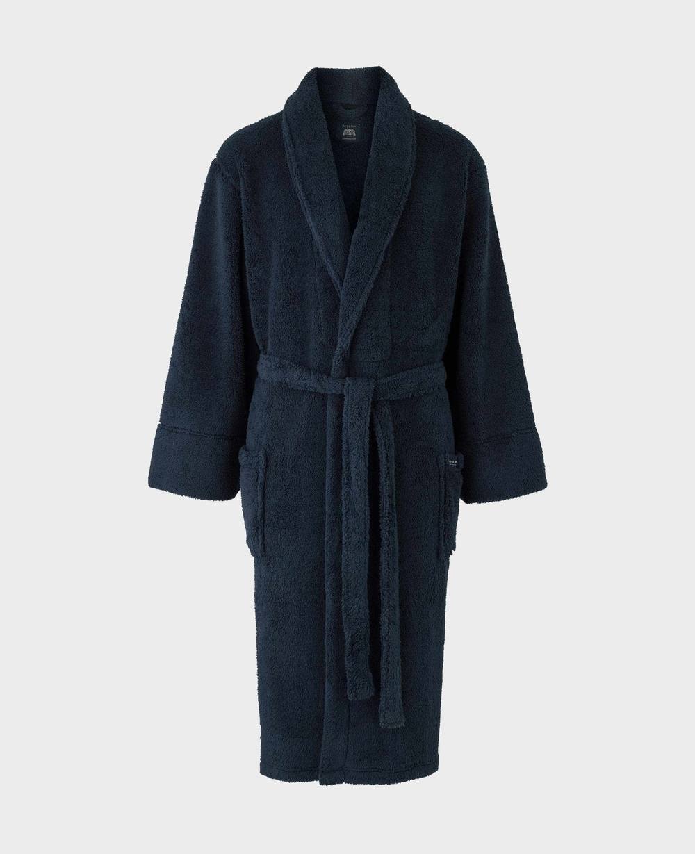 Savile Row Company London Men Super Soft Teddy Fleece Dressing Gown in Navy | Size: Small