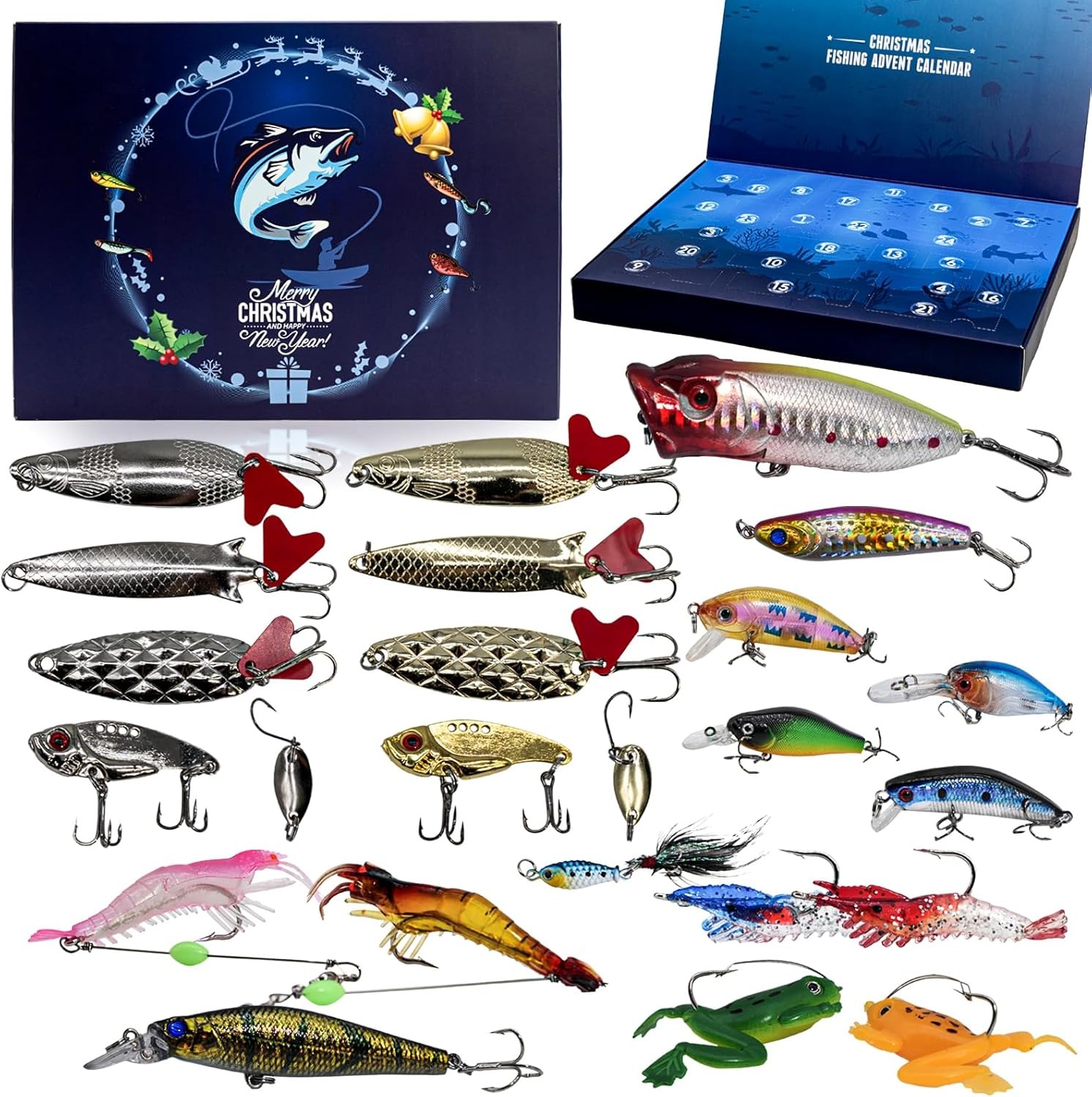 24-Day Fishing Lure Advent Calendar Blind Box - Christmas Countdown Gift for Fishermen, Adult Men, Teen Boys