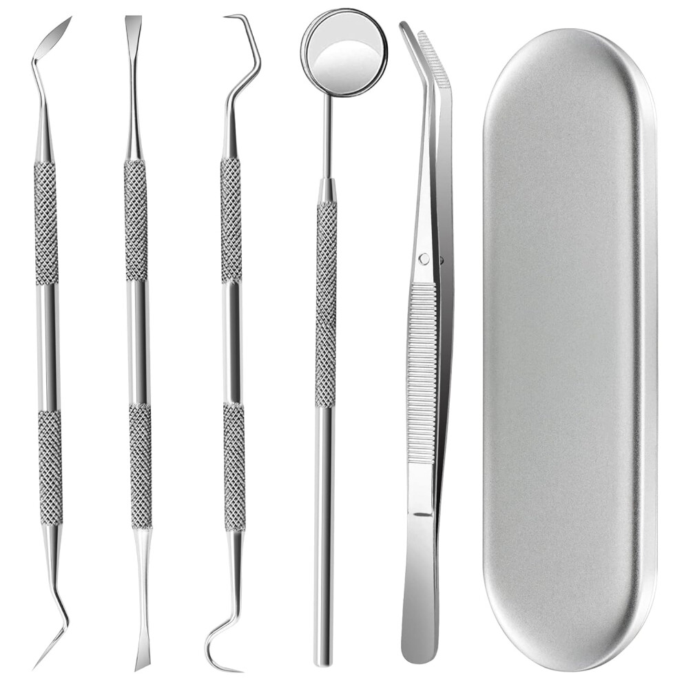 Dental Tools, 5 Professional Dentist Picks for Teeth Cleaning, Stainless Steel Teeth Cleaning Kit, Dental Scaler, Oral Hygiene Set, Tooth Scraper, Pla