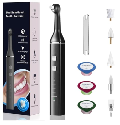 Tooth Polisher Electric Teeth Stain Remover, Teeth Polisher kit Teeth Cleaning whitening kit for Stain Removal Yellow Teeth with 5 Brush Heads&3 Polish Paste