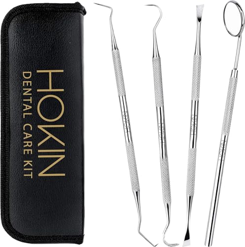 HOKIN Plaque Remover Teeth Cleaning Tool 4 Pcs Dental Care Kit Tooth Filling Repair Set Stainless Steel Dental Tools for Men Women Kids and Pet Care