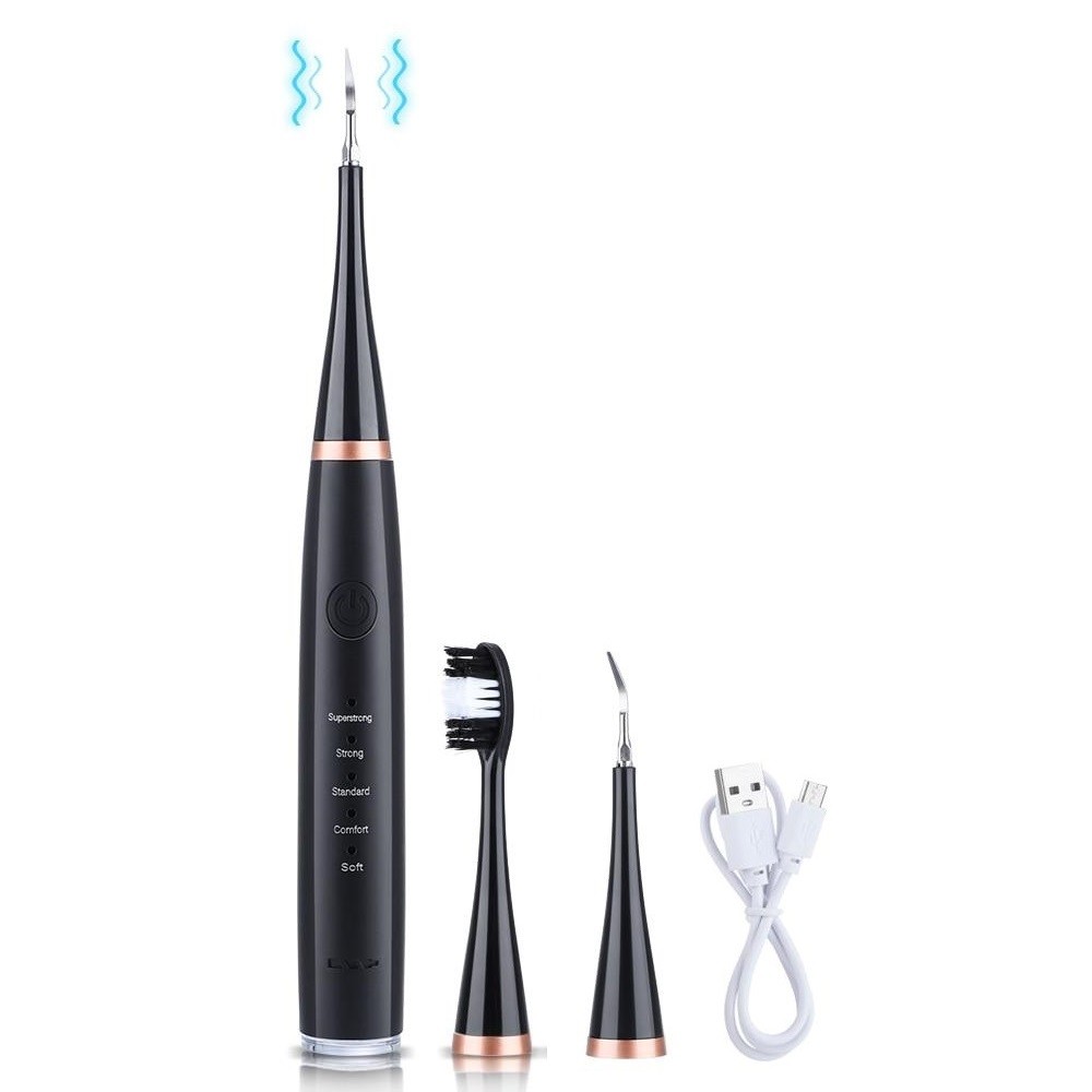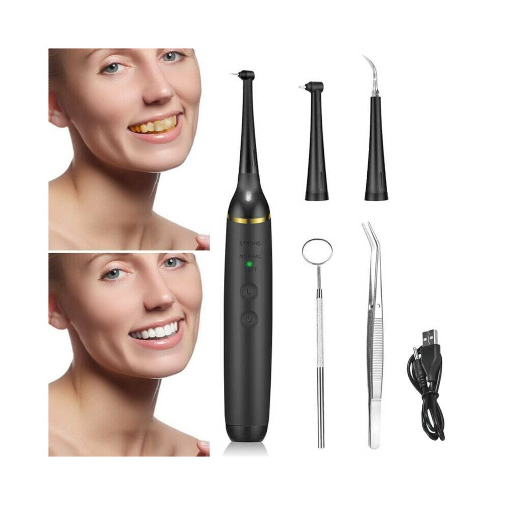 Ultrasonic Electric Teeth Cleaning Kit Plaque Stain Removal Set Scaler Black USB