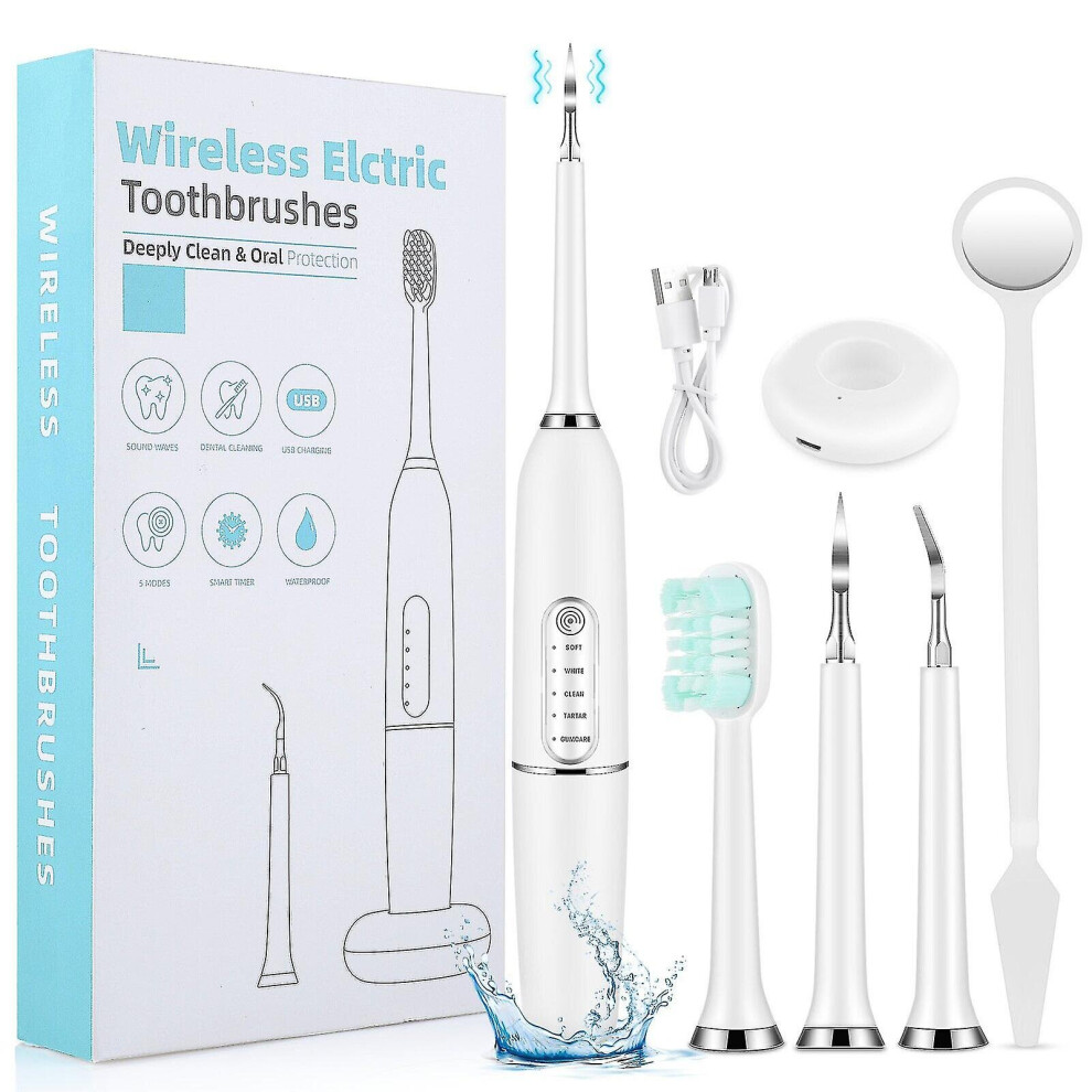 (White) 5 in 1 Tooth Polishing Cleaner Ultrasonic Electric Oral Teeth Cleaning Kit