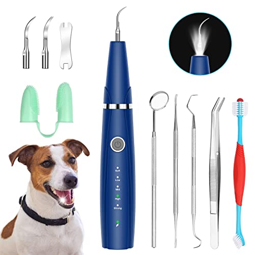 Dog Teeth Cleaning Kit, 5-Mode LED Ultrasonic Tooth Cleaner for Dogs & Cats – Plaque & Tartar Remover, 32-40kHz Pet Dental Care with Toothbrush (Blue)