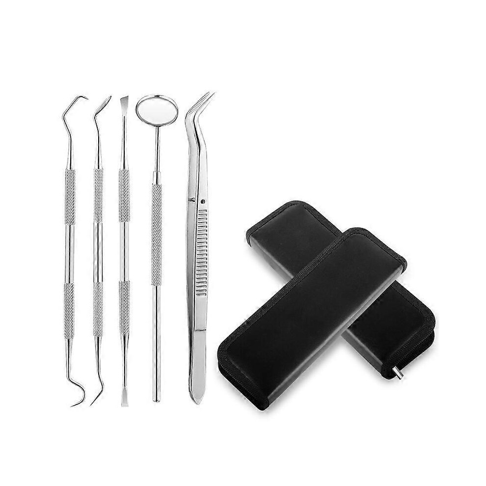 (As show, One size) Dental Tools 5 Pack Teeth Cleaning Tools Kit Dentist Tool Kit With Stainless Steel Dental Mirror