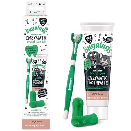 Bugalugs Dog Toothbrush and Toothpaste Kit Includes Cats & Dog Toothpaste, 2 x Finger Cat Toothbrush, 1 x Dog Toothbrush Dog Teeth Cleaning Products for Dog Plaque Remover & Dog Breath Freshener