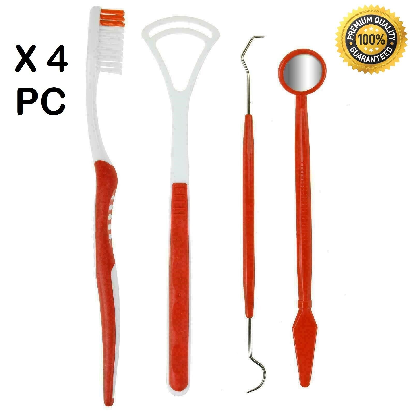Dental Teeth Cleaning Kit Toothbrush Tongue Cleaner Mirror Tooth Pick Brush x4pc