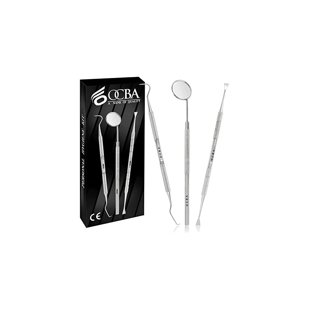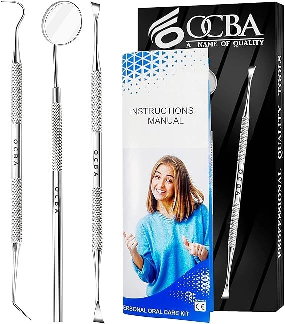 OCBA Plaque Remover for Teeth Cleaning Kit Stainless Steel Dental Plaque Removal Tool Including Dentist Mirror for Personal and Home Use