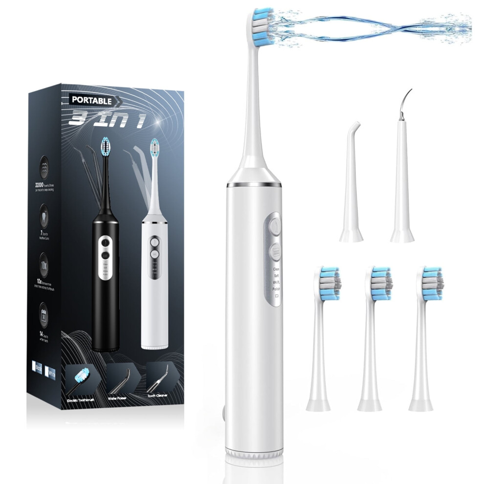 (White) Electric Toothbrush with Water flosser, 3 in 1 Teeth Cleaning Kit with 7Modes, Electric Toothbrush and flosser Combofor Adults, Water Flosser