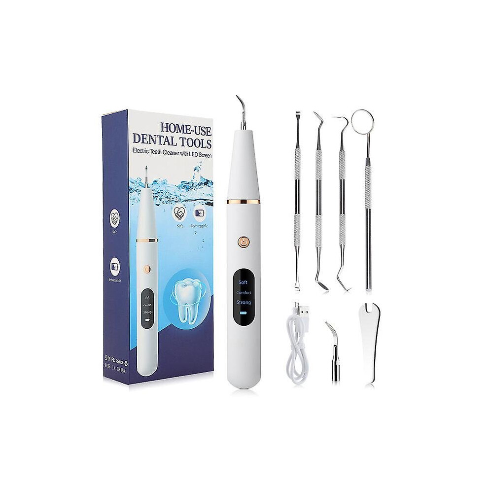 (As show, One size) Teeth Cleaning Kit Professional Ultrasonic Tartar Remover compatible Home Care Usb Rechargeable 2 Heads And 5 Modes compatible T
