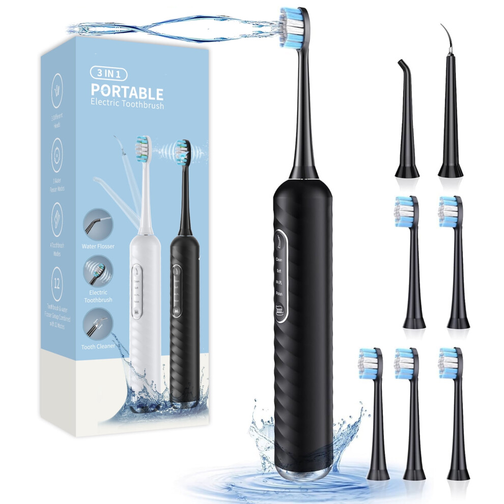 (Black) Electric Toothbrush with Water flosser, 3 in 1 Teeth Cleaning Kit with 7Modes, Electric Toothbrush and flosser Combofor Adults, Water Flosser