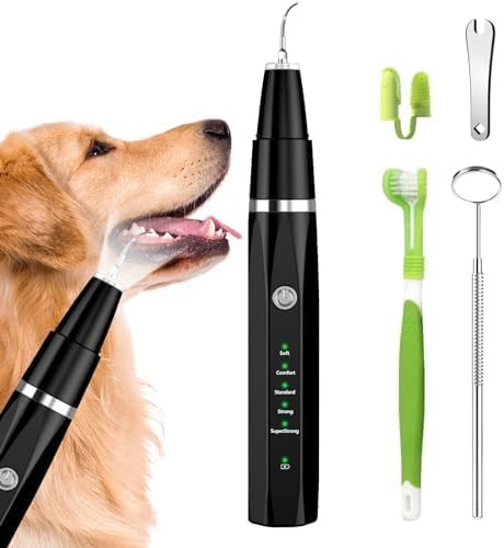 Dog Teeth Cleaning Kit, 5-Mode LED Ultrasonic Tooth Cleaner for Dogs & Cats – Plaque & Tartar Remover, 32-40kHz Pet Dental Care with Toothbrush