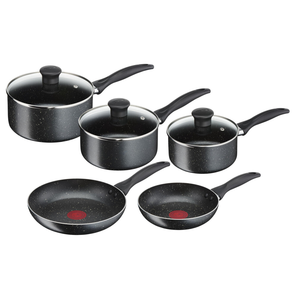 Tefal B190S544 Origins 5 Piece Stone Pots and Pans set, Black, 20 & 24CM Frying Pans, 16 & 18 & 20CM Saucepans with Lids