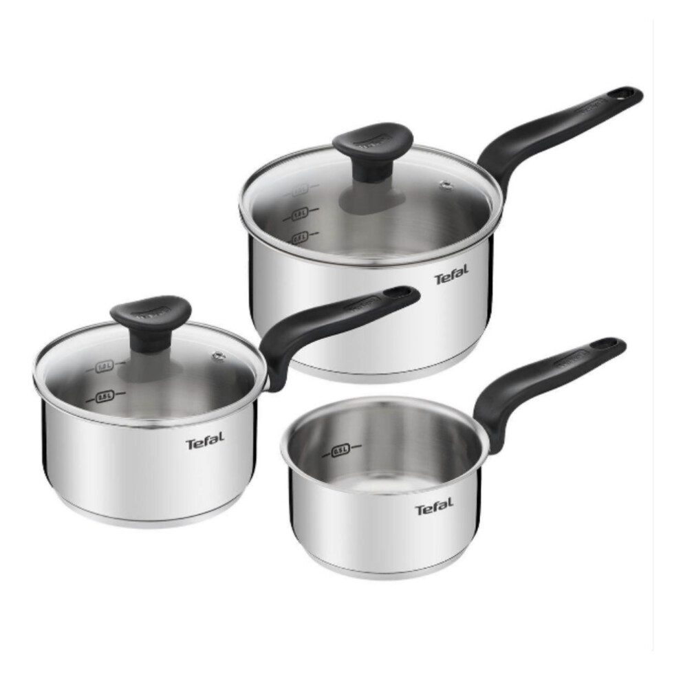 Tefal 3 Piece Stainless Steel Saucepan Set - Silver