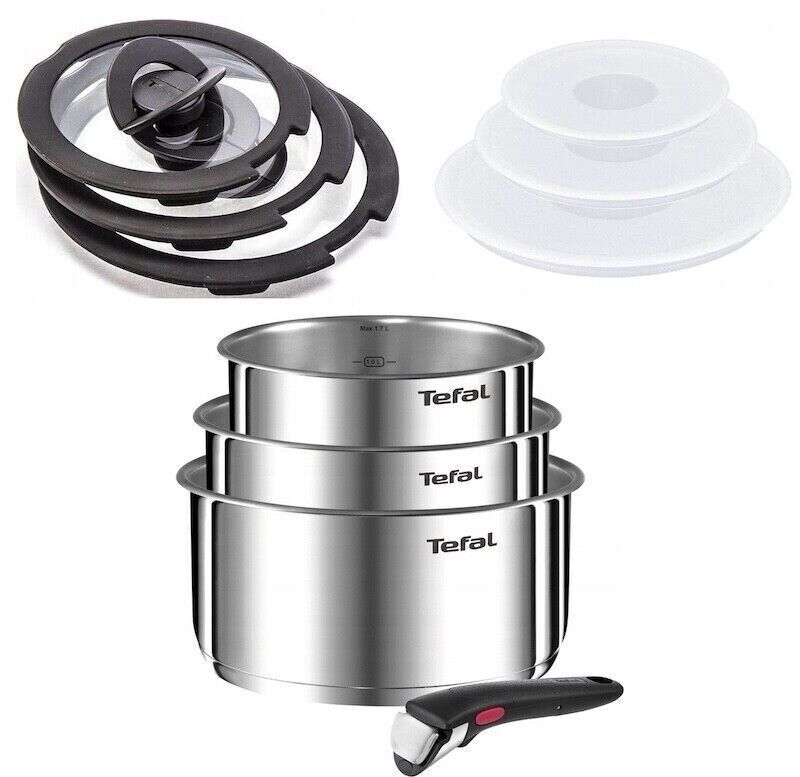 TEFAL INGENIO EMOTION 10-PIECE COOKWARE SET SAUCEPANS, GLASS LIDS, PLASTIC LIDS