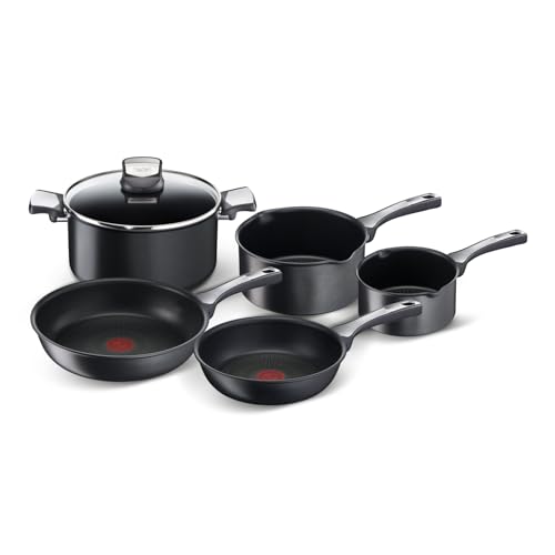 Tefal Titanium Essential 5pc Set: Saucepan 16/18/20 cm + Lids, Milkpan 14cm & Frying pan 24 cm, Non-Stick Coating, Metal Safe, All Hobs Compatible Except Induction, B941S544