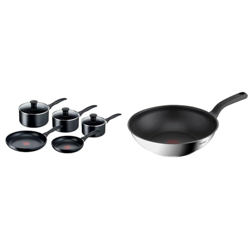 Tefal Induction G155S844 Non-Stick Cookware Set 8 Pieces-Black, saucepans, Aluminium & Natural On Induction G2801902 28 cm Non-Stick Wok Pan, Exclusive