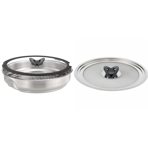 Tefal Ingenio Stainless Steel Steamer with Glass Lid & Ingenio L9879902 Stainless Steel Anti-Projection Lid 24-30 cm Splatter