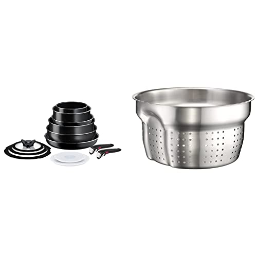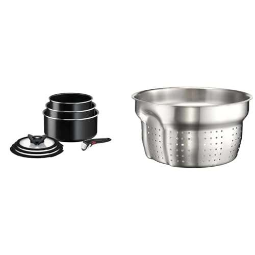 Tefal Ingenio Easy ON Pots & Pans Set, 13 Pieces, Stackable, Removable Handle, Space Saving, Black, L1599243 & L9259804 Ingenio Saucepan Pasta Insert, Stainless Steel, Silver Coloured, 1.2 kg