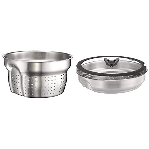 Tefal Ingenio Saucepan Pasta Insert, Stainless Steel, Silver Coloured, 1.2 kg & Ingenio Stainless Steel Steamer with Glass Lid
