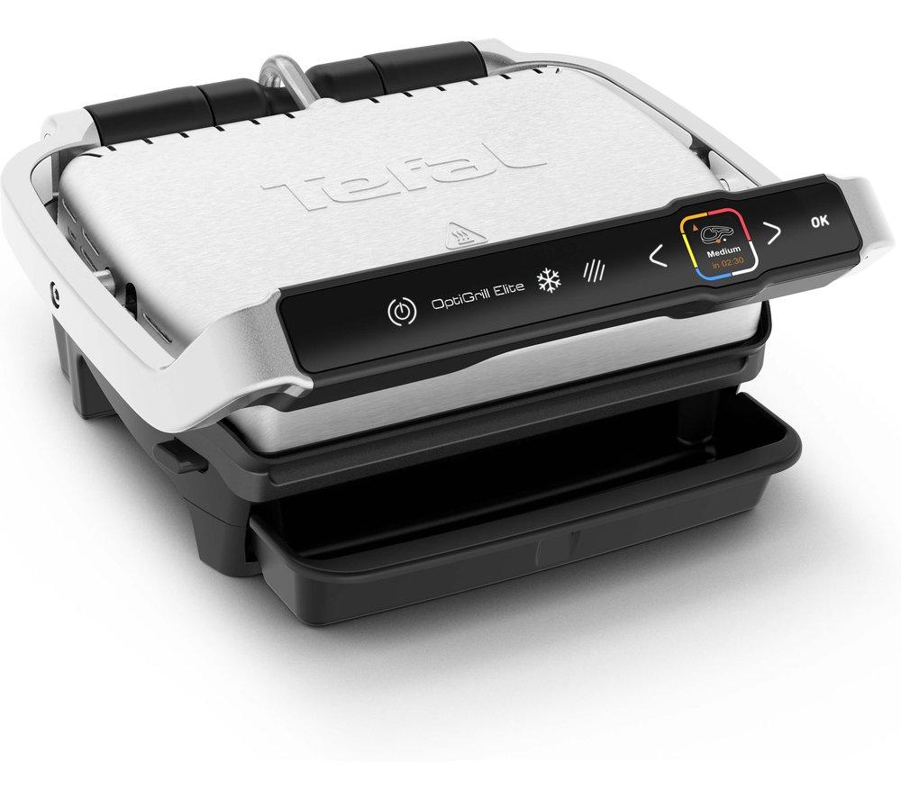 TEFAL Optigrill Elite GC750D40 Smart Health Grill - Silver & Black, Black,Silver/Grey