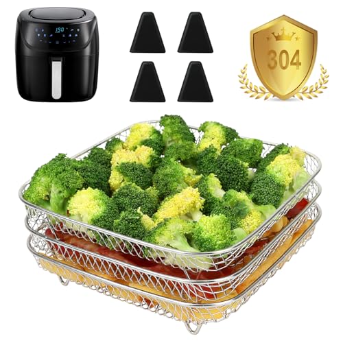 YQL Air Fryer Accessories for Russell Hobbs 4L, Stackable Airfryer Racks for Small Air Fryer 4L - 6.5L, 304 Stainless Steel Airfryer Trays Square for COSORI,Philips,Tefal,Ninja Single Basket, Oven