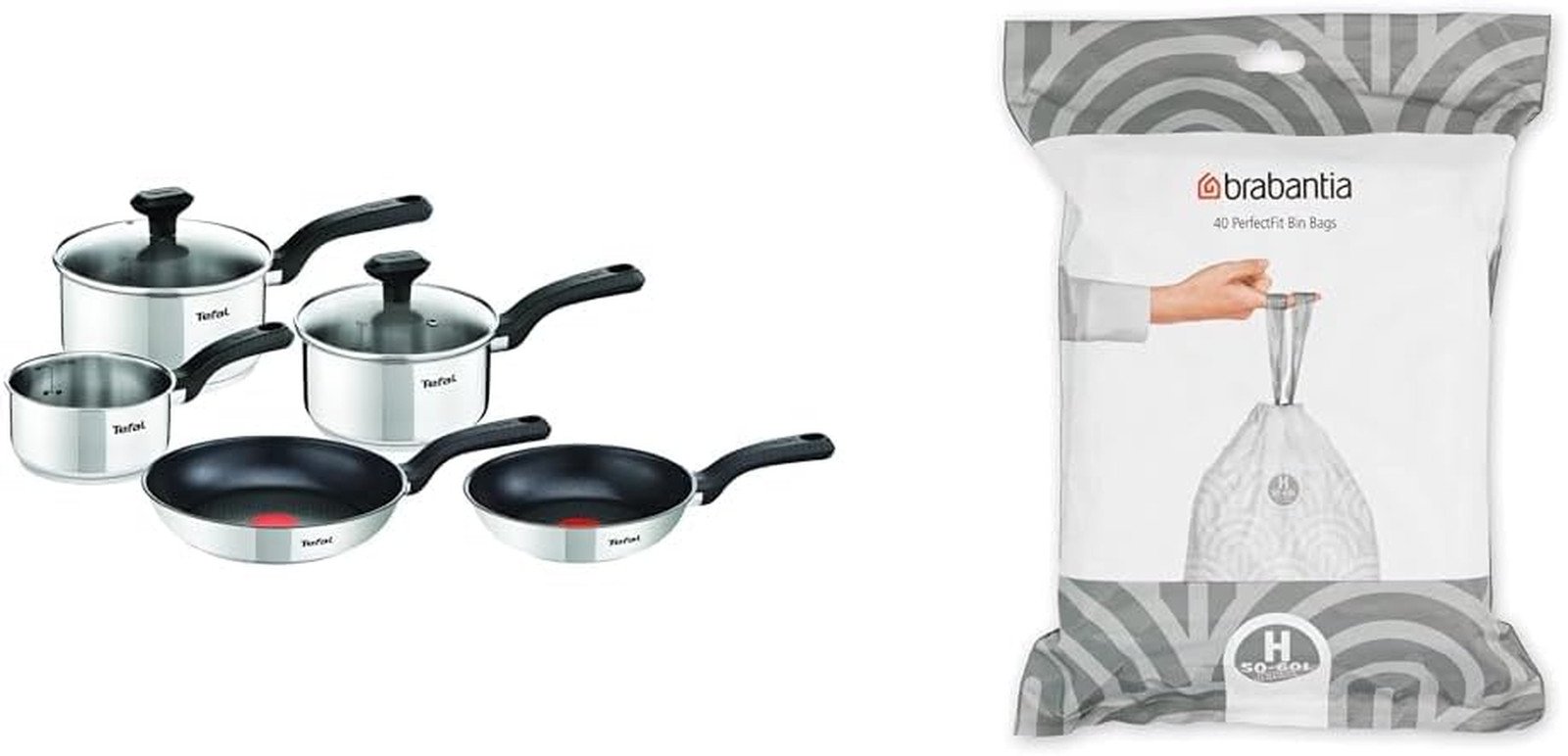 Tefal Comfort Max, Pan Set, 14cm Milkpan, 16cm and 18cm Saucepans with Lids & Brabantia 138744 PerfectFit Bin Liners (Size H/50-60 Litre) Thick Plastic Trash Bags