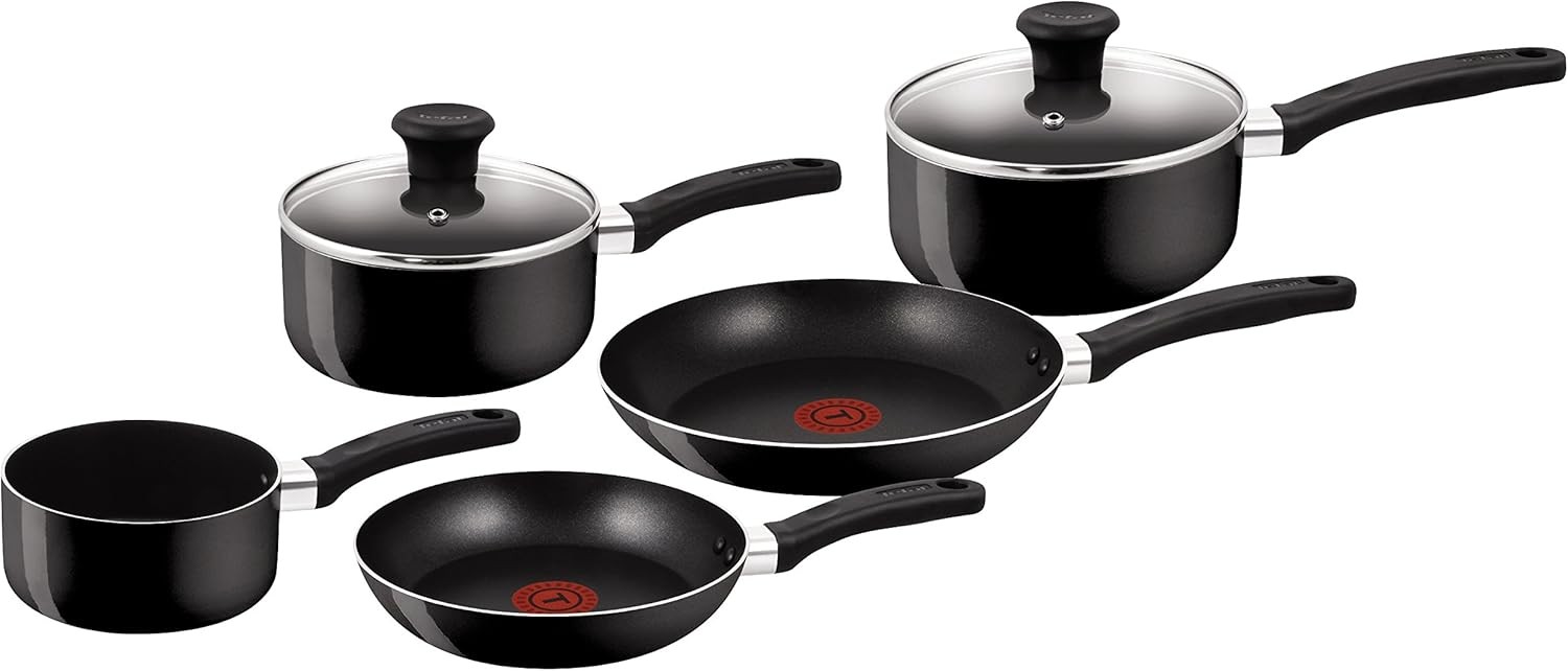 Tefal 5pc Non Stick Pan Set – Frying Pans, Saucepans with Lids, Milk Pans Black