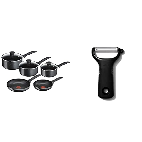 Tefal 5 Piece Origins Stone Pots and Pans set, Non Stick, Aluminium, Black, & OXO Good Grips Y Peeler