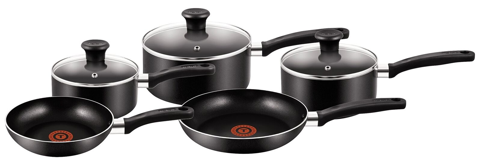5 Piece Essential Pots and Pans Set Non Stick Aluminium Black 5 Count Pack of 1